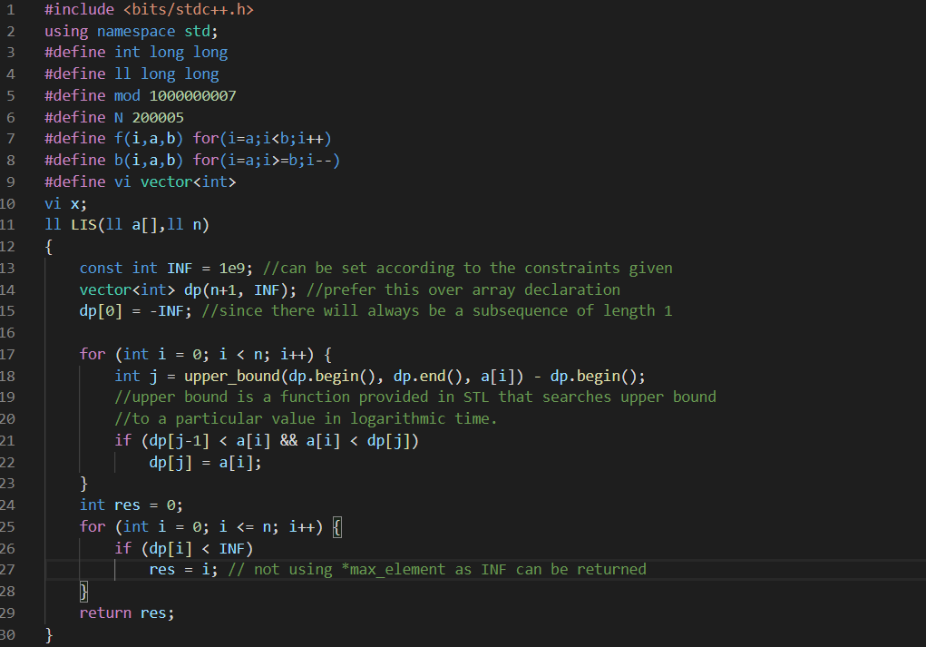 Lets see the code, follow the comments :)With the help of dp[] array, we get every longest increasing sub-sequence up-to every particular index 'i'.